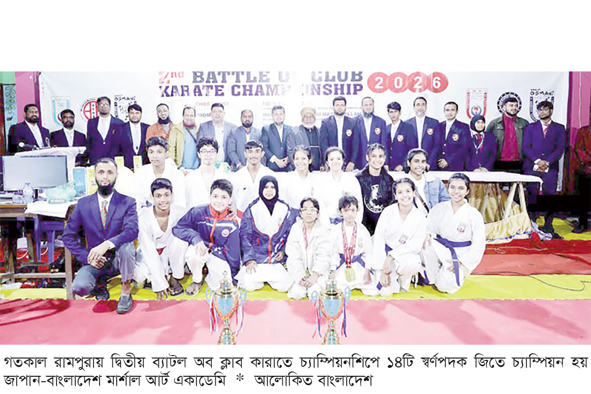দ্বিতীয় ব্যাটল অব ক্লাব কারাতে চ্যাম্পিয়নশিপে সেরা হয়েছে জাপান-বাংলাদেশ মার্শাল আর্ট একাডেমি। গতকাল রোববার রামপুরায় অনুষ্ঠিত খেলায় ১৪টি স্বর্ণপদক জিতে চ্যাম্পিয়ন হয় তারা। ১৩টি স্বর্ণ জিতে রানার্সআপ হয় বাংলাদেশ ওয়াদোকাই কারাতে দো। ১২টি স্বর্ণপদক জিতে দ্বিতীয় রানার্সআপ সোতোকান কারাতে বাংলদেশ। ওয়াদো কারাতে অ্যাসোসিয়েশনের সভাপতি আবদুল শুক্কুর আলী সিকদারের সভাপতিত্বে খেলা শেষে বিজয়ীদের হাতে পুরস্কার তুলে দেন লিয়ানা এন্ডেভর লিমেটেডের প্রেসিডেন্ট মো. শাজাহান মিয়া।