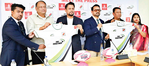 অনূর্ধ্ব-১৬ সেভেল স্কুল রাগবি টুর্নামেন্ট উপলক্ষে গতকাল জাতীয় হ্যান্ডবল স্টেডিয়ামের কনফারেন্স রুমে সংবাদ সম্মেলন শেষে জার্সি উন্মোমচন করা হয় * আলোকিত বাংলাদেশ