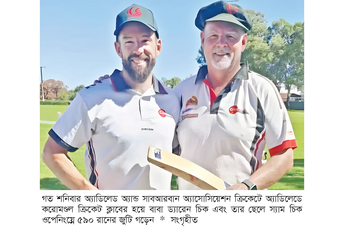 অস্ট্রেলিয়ার অ্যাডিলেড অ্যান্ড সাবআরবান অ্যাসোসিয়েশন ক্রিকেটে গত শনিবার ঘটেছে এই অবিশ্বাস্য ঘটনা। করোম্যান্ডেল ভ্যালির হয়ে মরফেটভিল পার্কের বিপক্ষে ওপেনিং জুটিতে অবিচ্ছিন্ন ৫৯০ রান তুলেছেন বাবা ড্যারেন চিক এবং তার ছেলে স্যাম চিক। ৪০ ওভারের ম্যাচটি এখন সামাজিক যোগাযোগমাধ্যমে ভাইরাল।
