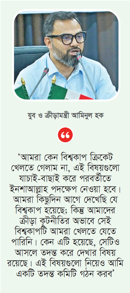 বিশ্বকাপে বাংলাদেশের অনুপস্থিতি নিয়ে তদন্ত করবে ক্রীড়া মন্ত্রণালয়