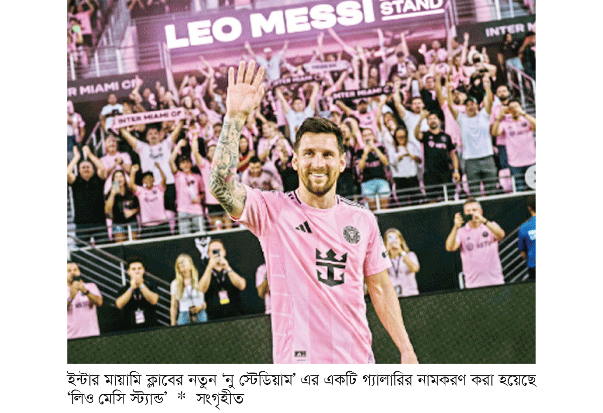 আগামী ৪ এপ্রিল মেজর লিগ সকারে অস্টিন এফসির বিপক্ষে ম্যাচের মাধ্যমে নতুন এই স্টেডিয়ামের উদ্বোধন করবে ইন্টার মায়ামি। উদ্বোধনী ম্যাচে যাঁরা ‘লিও মেসি স্ট্যান্ড’-এ বসে খেলা দেখবেন, তাদের জন্য বিশেষ কিছু চমক এবং রোমাঞ্চকর অভিজ্ঞতার ব্যবস্থা রাখা হয়েছে বলে জানিয়েছে ক্লাব কর্তৃপক্ষ। ২০২৩ সালের গ্রীষ্মে যোগ দেওয়ার পর থেকে ইন্টার মায়ামিকে বদলে দিয়েছেন মেসি। তার নেতৃত্বে ক্লাবটি এ পর্যন্ত লিগস কাপ (২০২৩), সাপোর্টার্স শিল্ড (২০২৪) এবং এমএলএস কাপ (২০২৫) জিতেছে। পাশাপাশি এক মৌসুমে এমএলএসে সর্বোচ্চ পয়েন্ট পাওয়ার রেকর্ডও গড়েছে তার দল। এখন পর্যন্ত মায়ামির হয়ে ৯৪ ম্যাচ খেলে ৮২ গোল করেছেন মেসি। গোলে সহায়তা করেছেন ৫৩টি। ২০২৪ ও ২০২৫ সালে টানা দুবার এমএলএসে সেরা খেলোয়াড় নির্বাচিত হয়েছেন। মেসির জন্য যদিও এই সম্মান নতুন নয়। এর আগে গত বছরের জুনে তার শৈশবের ক্লাব নিওয়েল’স ওল্ড বয়েজও তাদের স্টেডিয়ামের একটি স্ট্যান্ডের নামকরণ করেছিল মেসির নামে।