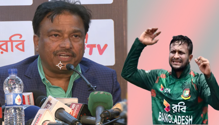 সন্ধ্যায় মিরপুরে বোর্ড সভা শেষে ফারুক আহমেদ জানালেন, ‘গতকাল দুই দফায় কথা হয়েছে সাকিবের সাথে। আমি তো আসলে আইন শৃঙ্খলা বাহিনীর কেউ না। সেটার পার্ট হতে পারব না। একজনকে ব্যক্তিগতভাবে নিরাপত্তা দেওয়ার সামর্থ্য নাই। সেটা আসলে আইন শৃঙ্খলা বাহিনীর দিক থেকে এবং তার দিক থেকে আসতে হবে। বোর্ড থেকে ক্লিয়ারেন্স দেওয়ার সামর্থ্য বিসিবির নাই।’