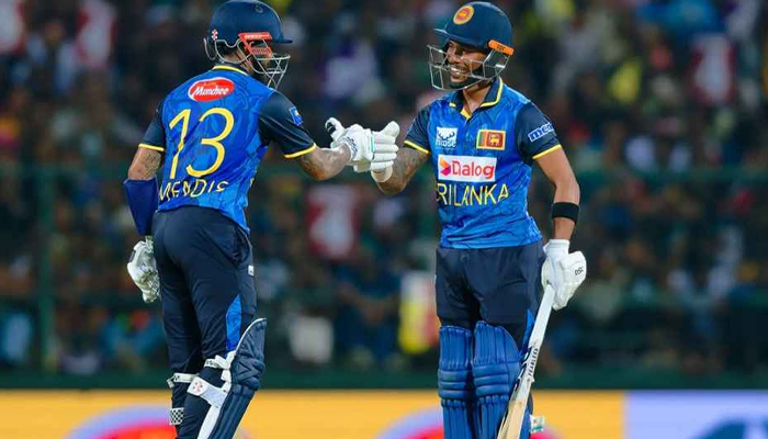 লক্ষ্য তাড়া করতে নেমে শুরুতেই ব্যাট হাতে ঝড় তোলেন পাথুম নিশাঙ্কা ও কুশাল মেন্ডিস। পাওয়ার প্লেতেই তুলে ফেলেন ৮৩ রান। ৩১ বলে হাফসেঞ্চুরি করেন মেন্ডিস। নিশাঙ্কা ৪২ রানে আউট হন মিরাজের বলে। ২৪ রান করা কুশাল পেরেরাকে ফিরিয়ে দেন রিশাদ হোসেন।