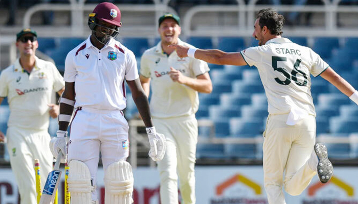 দ্বিতীয় ইনিংসে ওয়েস্ট ইন্ডিজের কেবল সপ্তম ব্যাটার জাস্টিন গ্রিভস (১১) ‍দুই অঙ্কের ঘরে পৌঁছাতে পেরেছেন। অন্যদিকে, অস্ট্রেলিয়ার হয়ে মাত্র ৯ রানে ৬ উইকেট শিকার করেন স্টার্ক। এ ছাড়া হ্যাটট্রিক করা বোল্যান্ড ২ রানে ৩ উইকেট এবং জশ হ্যাজলউড অবশিষ্ট ১ উইকেট নেন।