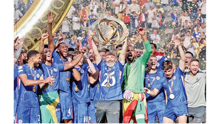 মৌসুম জুড়ে দুর্দান্ত ফর্মে ছিল প্যারিস সেইন্ট জার্মেইন (পিএসজি)। ইতিহাসে প্রথমবারের মতো উয়েফা চ্যাম্পিয়ন্স লিগ জিতেছে ফরাসি ক্লাবটি। তার আগে লিগাসহ ঘরোয়া চার শিরোপা বগলদাবা করেছিল লুইস এননিরেকের শিষ্যরা। ফিফা ক্লাব বিশ্বকাপের সেমিফাইনাল অবধি দুর্দান্ত ছিল তারা। কিন্তু ফাইনালে সব হিসাব-নিকাশ পুরোপুরি উল্টে গেল। আকাশে উড়তে থাকা পিএসজিকে টেনে মাটিতে নামিয়ে আনল ইংলিশ জায়ান্ট চেলসি। বাংলাদেশ সময় গত রোববার দিবাগত রাতে যুক্তরাষ্ট্রের মেটলাইফ স্টেডিয়ামে নতুন ফরম্যাটের ক্লাব বিশ্বকাপের ফাইনালে পিএসজিকে ৩-০ গোলে উড়িয়ে প্রথম চ্যাম্পিয়ন হল এনজো মারেসকার শিষ্যরা। ২০২১ সালে আগের ফরম্যাটের ক্লাব বিশ্বকাপ জিতেছিল চেলসি। চার বছর পর এ টুর্নামেন্টে দ্বিতীয় শিরোপা ইংলিশ জায়ান্টদের। ফাইনালের আগে চেলসি কোচ এনজো মারেসকা বলেছিলেন, ফুটবলকে দাবা খেলার মতো মনে করি আমি। প্রতিপক্ষ যখন মুভ করবে, তখন পাল্টা কিছু দিতে হবে। ফাইনালটাও হবে দাবা খেলার মতো। সে দাবার চালেই কিস্তিমাত করল চেলসি। পিএসজি একটা সময় ৭০ শতাংশ বলের দখল রেখে খেললেও গোল করে কাজের কাজটা সেরেছে ইংলিশ দলটিই। বিরতির আগেই চেলসি এগিয়ে গিয়েছিল ৩-০ গোলে। জোয়াও নেভাস ৮৫ মিনিটে লাল কার্ড দেখলে ১০ জনের দলে পরিণত হয় পিএসজি। চেলসি লেফট ব্যাক মার্ক কুকুরেইয়ার টেনে তাকে ফেলে দিয়ে লাল কার্ড দেখেন নেভেস। একজন কম নিয়ে বাকি সময়টা আর পেরে উঠেনি তারা। চেলসি এগিয়ে যায় ২২তম মিনিটে। গোলরক্ষকের লম্বা করে বাড়ানো বল ধরে বক্সে ঢুকে মালো গিস্তোর শট রক্ষণে প্রতিহত হওয়ার পর এ ডিফেন্ডার খুঁজে নেন পালমারকে। বক্সের মাথা থেকে বাঁ পায়ের নিচু শটে গোল করেন কোল পালমার। এবারের ক্লাব বিশ্বকাপে নকআউটে ১৪ ম্যাচের ১৩টিই জিতেছিল প্রথমে গোল করা দল।