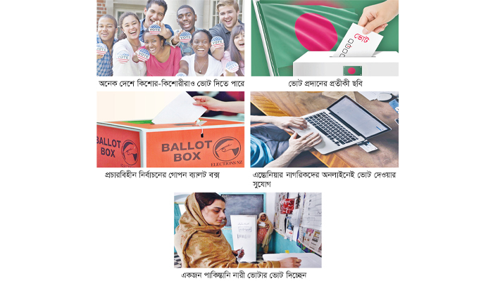 ভোটার হতে বয়স : বিশ্বের প্রায় ২০৫টি দেশে ভোটাধিকার প্রয়োগ করতে ন্যূনতম বয়স ১৮ বছর হতে হয়। তবে এর ব্যতিক্রমও আছে। ব্রাজিল ১৯৮৮ সালে প্রথমবারের মতো ১৬ বছর বয়সী কিশোর-কিশোরীদের ভোট প্রদানের সুযোগ দেয়। এরপর অস্ট্রিয়া, ইকুয়েডর, আর্জেন্টিনাসহ প্রায় ১১টি দেশে ১৬ বছর থেকেই ভোট প্রয়োগের সুযোগ রয়েছে। ব্রাজিল এবং আর্জেন্টিনায় বাধ্যতামূলক ভোটের ব্যবস্থা চালু। তা সত্ত্বেও ১৬-১৭ বয়স পর্যন্ত ভোট দেওয়া বাধ্যতামূলক নয়। তবে ১৮ বছর বয়স থেকে ভোট না দিলে জরিমানা গুণতে হয়। ইন্দোনেশিয়া এবং ডমেনিক রিপাবলিকে ভোটার হতে বয়স যথাক্রমে ১৭ এবং ১৮ বছর হতে হয়। তবে বিবাহিতরা যেকোনো বয়সে ভোট দিতে পারেন। ২০০৭-এর আগে ইরানে ১৬ বছর থেকে ভোট দেওয়ার সুযোগ ছিল। ২০০৭ সালে তা পরিবর্তন করে করা হয় ১৮ বছর। তবে ১৯৮০ সালের পর থেকে বেশ কয়েকবার পরিবর্তন করা হয়েছে সেটি। বসনিয়া ও হার্জেগোভিনায় ১৮ বছর বয়স থেকেই ভোটের অধিকার পায় সবাই। তবে কারও বয়স ১৬ বা এর বেশি, কিন্তু সে যদি কোনো কর্মক্ষেত্রে যুক্ত থাকে, তবে সে ভোট দিতে পারবে। কিন্তু আরব আমিরাতে ভোট দিতে চাইলে ন্যূনতম ২৫ বছর বয়স হতে হয়।
